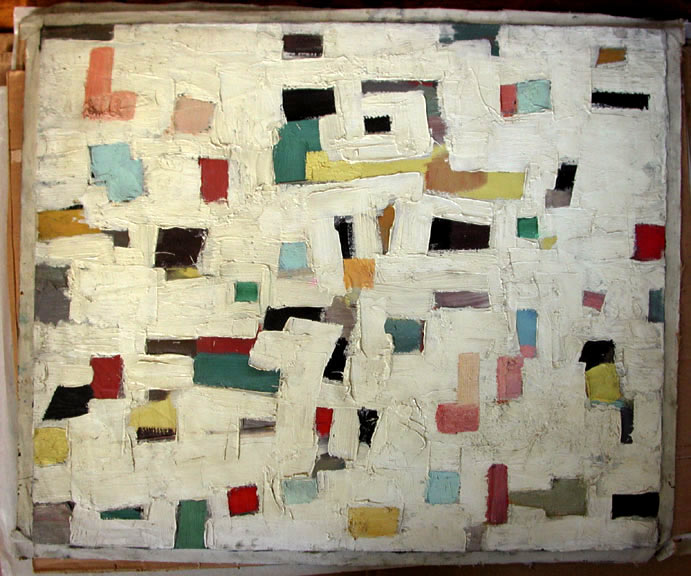 153 Untitled (Abstract Squares on White) Dim: 25" x 29" Year: 1956 Medium: Oil Substrate: Canvas-Unframed EstateSigned SOLD |
