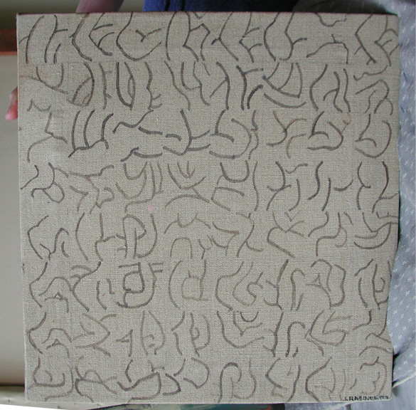 318 Untitled (Figures in Grid) Dim: 16" x 16" Year: 1973 Medium: Ink Substrate: Burlap-framed Signed $300.00 |